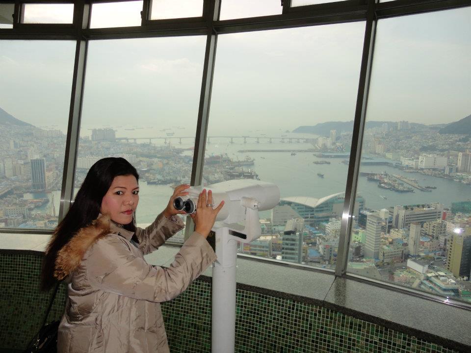 Busan Tower rose gracefully into the sky, a white column standing tall above the city. We took the elevator to the observation deck, and the view was breathtaking. From above, we saw the harbor, the mountains, and the city stretching in every direction. It was a moment of quiet awe.